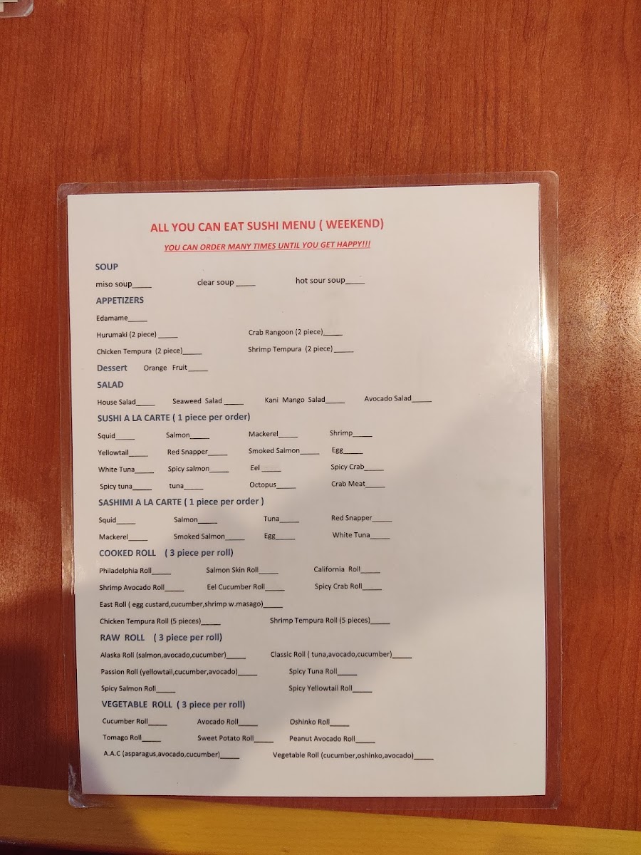 Located at 7230 W 10th St, Sushi Club - Indianapolis offers an impressive fusion of flavors perfect for sushi enthusiasts. Renowned for its all-you-can-eat ($27) experience, this hidden gem surprises diners with its extensive selection of over 20 specialty rolls, each prepared with fresh ingredients. Highlights include the Spicy Crunchy Tuna Roll and Salmon Skin Roll—every bite bursting with taste. The menu also caters to diverse palates, featuring delicious Asian dishes like Chicken Fried Rice and General Tso's Chicken.